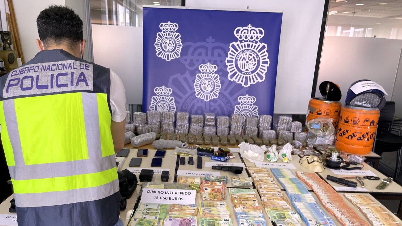 Junto a los más de 40 kilos de hachís incautados, se han intervenido casi 52.000 euros en efectivo, un arma de fuego, unos de 400 gramos de cocaína, marihuana y útiles para la manipulación de sustancias estupefacientes entre los que se encontraban balanzas de precisión y bombonas de butano con doble fondo para el transporte de la droga. También se han intervenido ocho vehículos de alta gama.