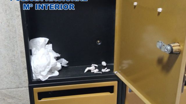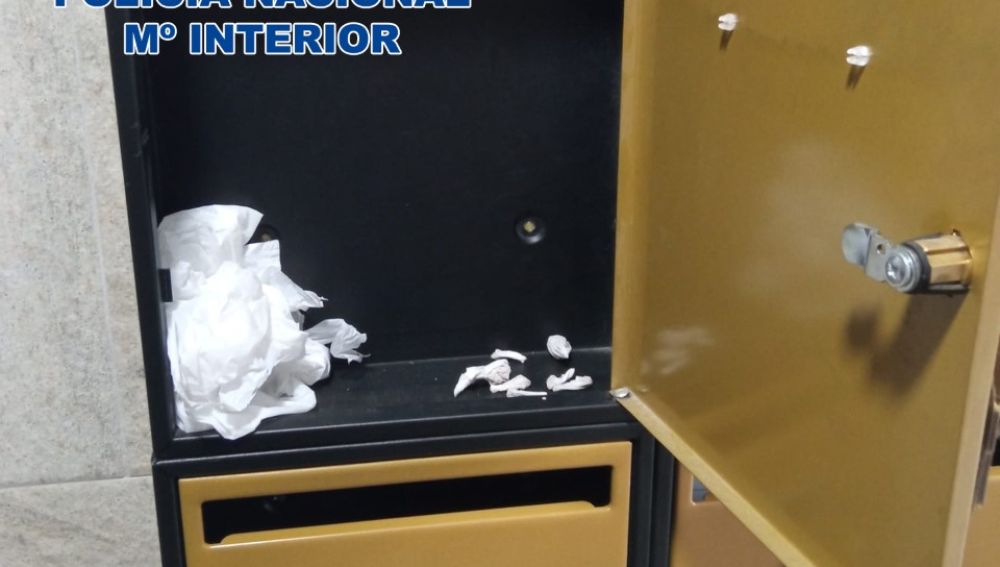 Los agentes también descubrieron que los ahora detenidos utilizaban el buzón del piso para almacenar la sustancia estupefaciente ya dispuesta en dosis perfectamente preparadas para su venta.