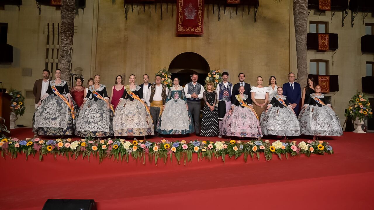 Con una afluencia estimada de en torno a un millar de personas, la céntrica plaza de Baix de Elche ha acogido en la noche de este pasado sábado el acto de Proclamación de lasReinas y Damas de las Fiestas de Elche de este año de 2024.