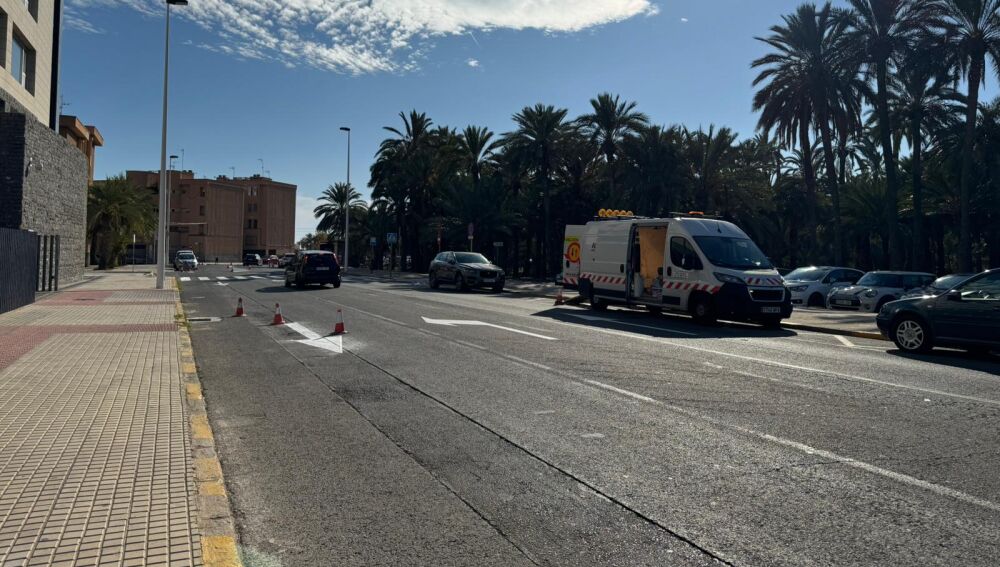 Las tareas de repintado de la señalización horizontal en el casco urbano y las pedanías del municipio ilicitano se ejecutan al paraguas de un contrato de 350.000 euros, que incluye los servicios de mantenimiento, reposición y colocación de nueva señalización vial en el término municipal.
