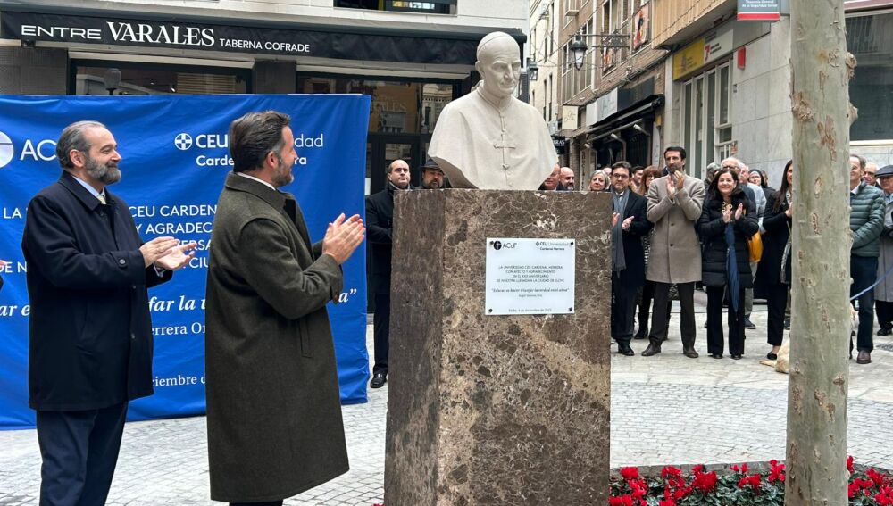 El presidente de la Fundación Universitaria San Pablo CEU se ha expresado en esos términos antes de asistir al acto de descubrimiento del busto dedicado al Cardenal Herrera Oria que, en conmemoración del 30 aniversario de la llegada del CEU a Elche, ha quedado ubicado en la Replaçeta de Les Barques, muy cerca de la sede original de la universidad en el centro de la ciudad, que es la que está en la calle Carmelitas.