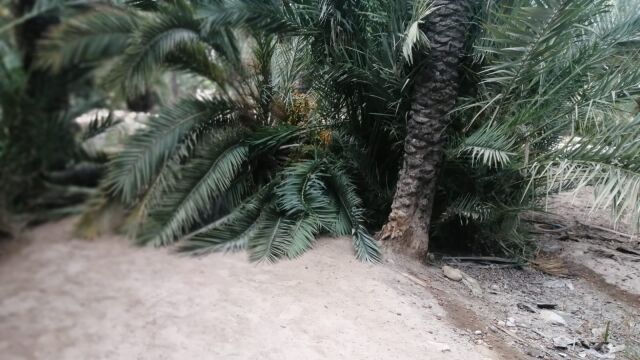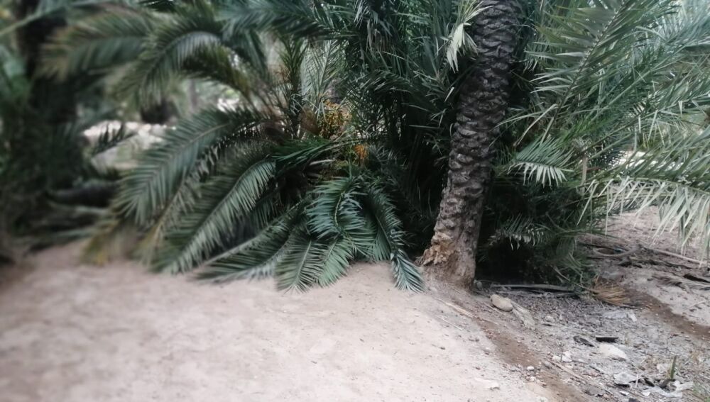 Vecinos del barrio Puertas Coloradas de Elche han denunciado este jueves la inacción del Ayuntamiento ante la caída de varias palmeras en lo que conocen como huerto Jerónimo. Dos de ellas han caído sobre un camino muy frecuentado por vecinos de la zona e incluso por turistas e impiden el tránsito por esa área.