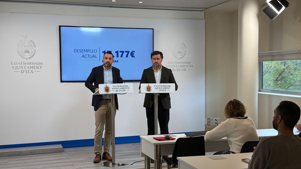 PP y Vox en Elche, formaciones políticas que forman el gobierno local, han sacado pecho este miércoles de la evolución del desempleo en el municipio en los últimos años.