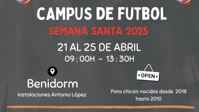 Esta formación se realizará del lunes 21 al viernes 25 de abril en el campo Nerea Pérez Machado para disfrutar de una experiencia única de fútbol, pasión y diversión. Habla Javier Jordá, concejal de deportes del Ayuntamiento de Benidorm.