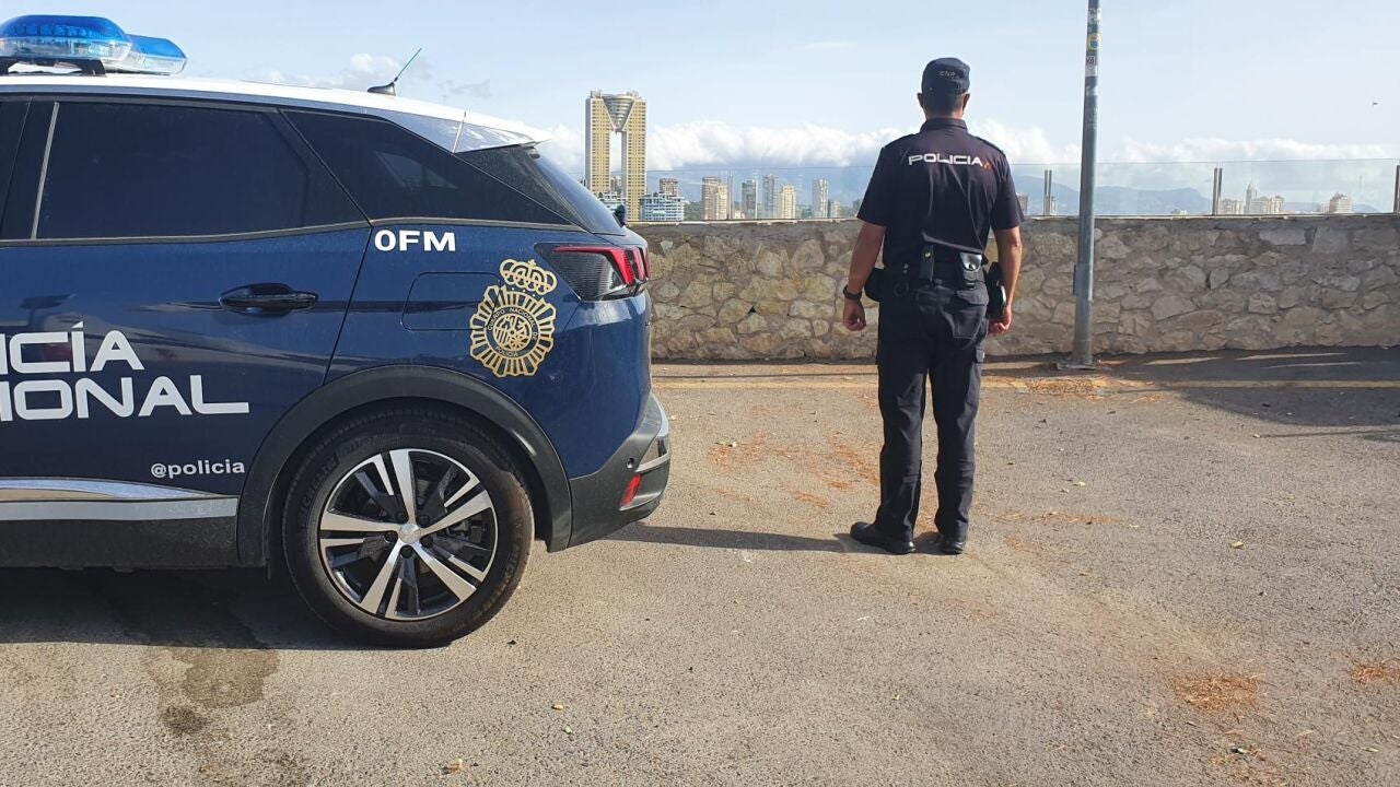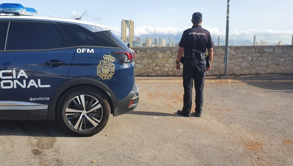 Agentes del Cuerpo Nacional de Policía de Benidorm investigan la agresión sufrida por un hombre al que le arrojaron ácido a la cara en plena calle.