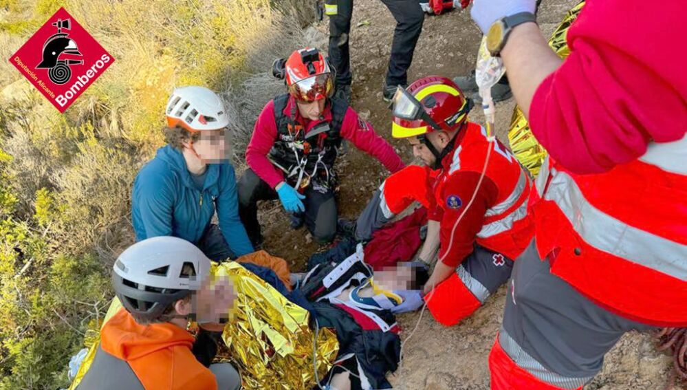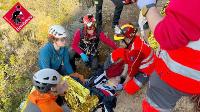 Los Bomberos de Benissa rescataban esta mañana a dos jóvenes de entre 18 y 20 años que han sufrido una caída mientras realizaban escalada en la partida de Maryvilla, en Calp.