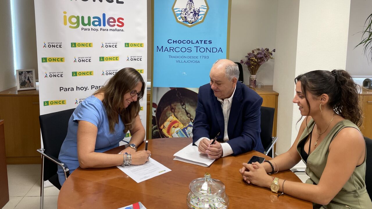 La empresa vilera Chocolates Marcos Tonda ha firmado un acuerdo de colaboración con la ONCE para hacer más accesible a las personas invidentes, el diseño y etiquetado de los productos de esta empresa.