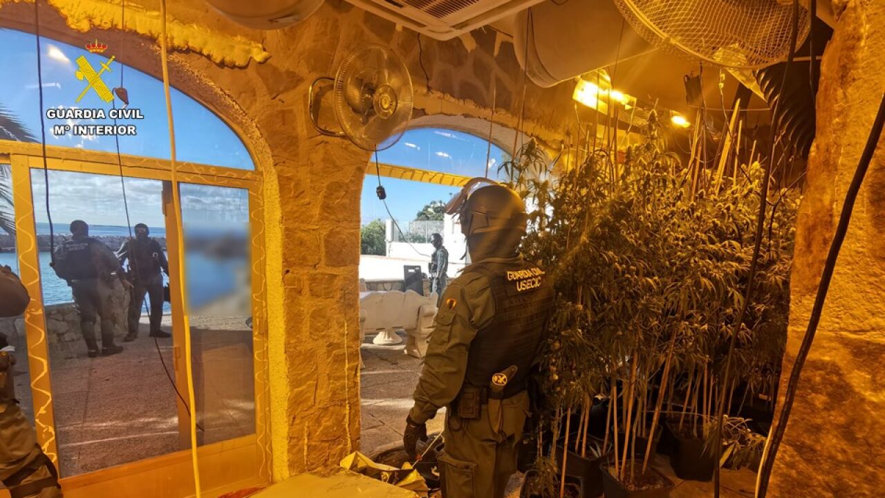 La Guardia Civil ha desmantelado en la localidad de Calpe una plantación ilegal de marihuana indoor que se ocultaba en un chalé de la localidad y ha detenido a dos varones que se encuentran en prisión por delitos contra la salud pública y defraudación de fluido eléctrico.
