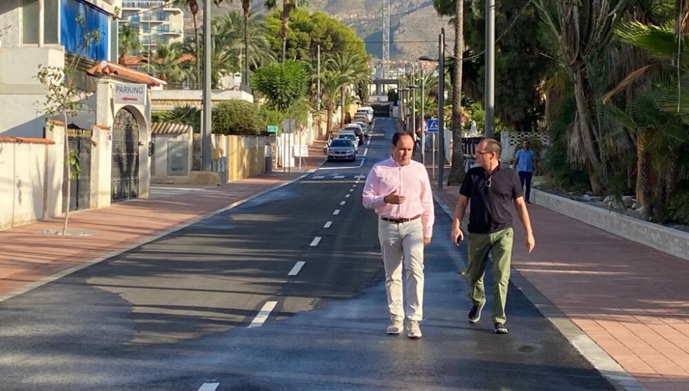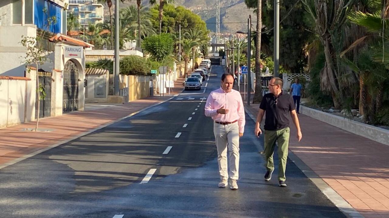 El alcalde de Finestrat, Juanfran Pérez, ha paseado hoy por las renovadas calles de esta urbanización, que comprende la Avenida Mimosas y la calle Salvia, que fue construida en los años setenta y que, desde entonces, no había tenido obra alguna de mantenimiento.