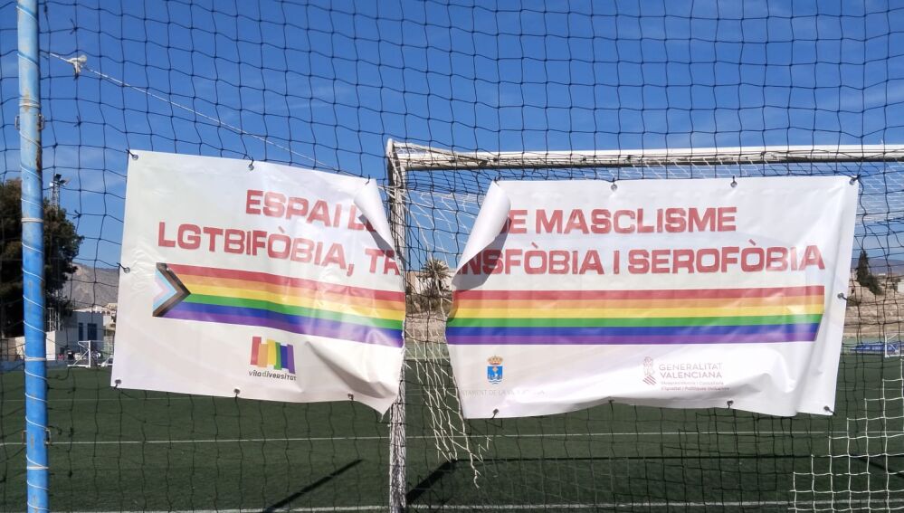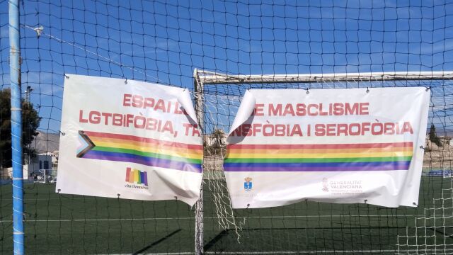 Para conmemorar esa fecha, que se celebraba el pasado 19 de este mes, se desplegaba una pancarta en las vallas del campo de fútbol Calsita, con el lema “Espai lliure de masclisme, lgtbifòbia, transfòbia i serofòbia” que ha aparecido rasgada y destrozada a causa de un acto vandálico que le colectivo cree que podría ser un posible delito de odio. La pancarta quería visibilizar la lgtbifobia en el deporte.