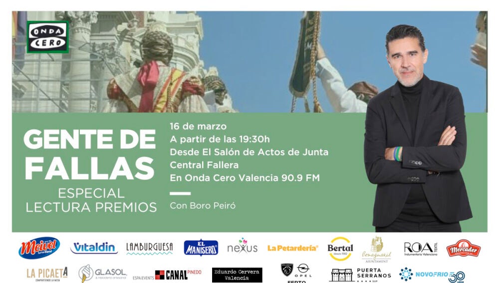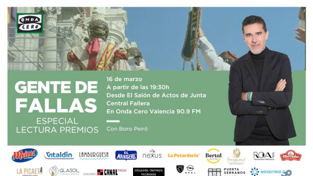 Programa especialGente de fallas desde la lectura de premiosDesde Junta Central Fallera, lectura de todos los premios de las Fallas 2023 ondacero.es Valencia | 16.03.2023 09:18 Gente de fallas desde la lectura de premios | ondacero.es