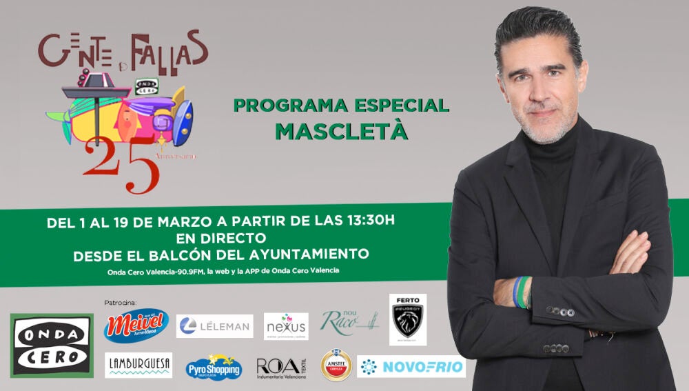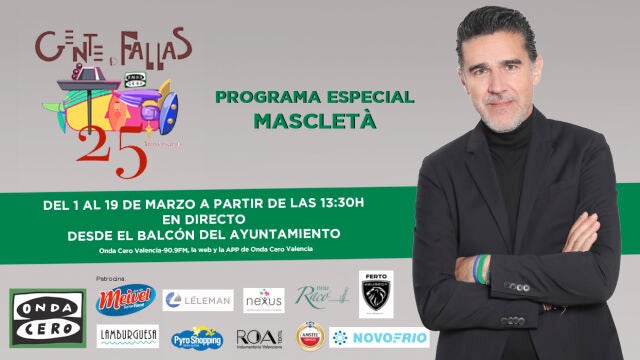 Del 1 al 19 de marzo la mascletà en directo a partir de las 13:30 en Onda Cero Valencia 90.9Fm desde el balcón del Ayuntamiento de València