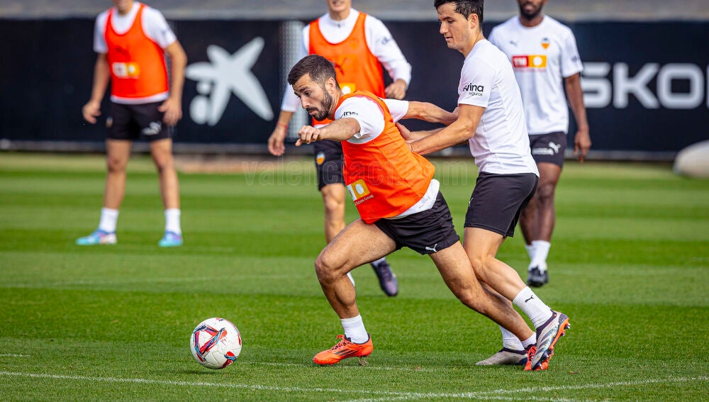 Para el duelo ante el Betis, el entrenador del Valencia, Rubén Baraja, ha estado probando con una defensa formada por 5 jugadores: Foulquier, Mosquera, Yarek, Tárrega y Gayá.