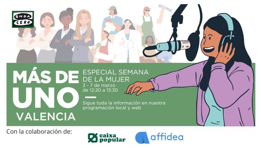 Con el patrocinio de Clínicas Affidea y Caixa PopularSemana de la mujer en Más de Uno ValenciaDel 3 al 8 de marzo semana de la mujer con programación especial en Más de Uno Valencia.Con el patrocinio de Clínicas Affidea y Caixa Popular ondacero.es Valencia | 03.03.2025 11:20 Semana de la mujer en Más de Uno Valencia | ondacero.es