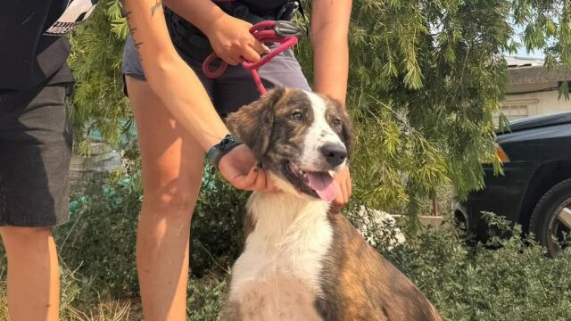 Esta es Gala, de 7 meses y recogida en Alginet. Mateu señala que en Modepran acogen muchos podencos, ya que, dice, "es una de las razas más 'castigadas' de la Comunitat".