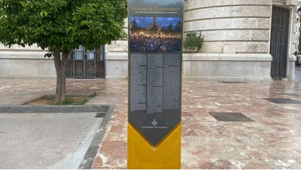 Este mes de mayo se cumplen dos años desde que se colocóen la plaza del Ayuntamiento de València el monolito de homenaje al movimiento 15M sin que el gobierno municipal haya cumplido todavía el acuerdo plenario que, unos días después, ordenó retirarlo. La instalación del monolito, que costó 3.000 euros, fue una iniciativa unilateral de Compromís que no gustó nada a sus socios de gobierno del PSPV.