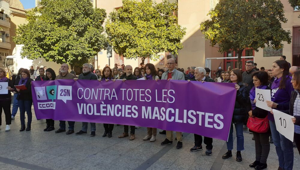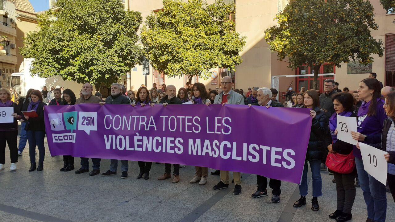 Comisiones Obreras en la Comunitat Valenciana ha recordado este viernes con una performance a las 52 mujeres asesinadas por el machismo. Además desde el sindicato han recordado que el acoso sexual y por razón de sexo en el trabajo es una de las violencias más invisibilizadas.