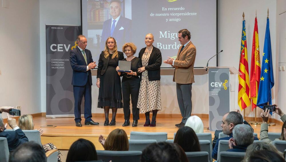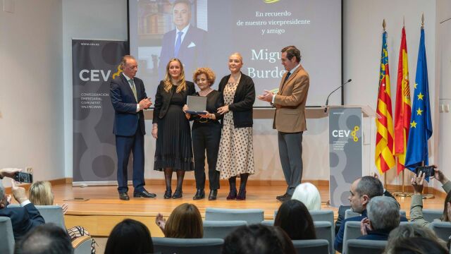 A partir de ahora el auditorio de la patronal valenciana llevará el nombre de Miguel Burdeos como homenaje por su compromiso en favor de los empresarios.