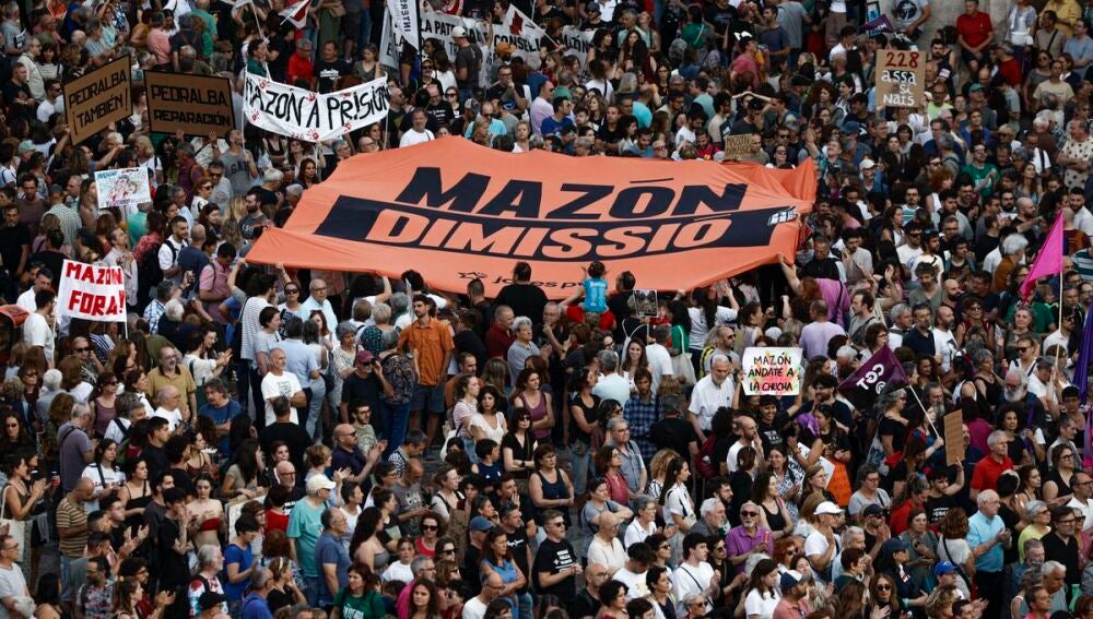 Se trata, con todo, del décimo acto de protesta bajo ese lema 'Mazón dimisión'. Los y las asistentes insisten en pedir la dimisión de Carlos Mazón como president de la Generalitat por su gestión de la DANA de València. Reivindican que el Gobierno valenciano asuma responsabilidades políticas y judiciales tras la que ha sido, sin lugar a dudas, la mayor catástrofe de la historia reciente de la Comunitat Valenciana.