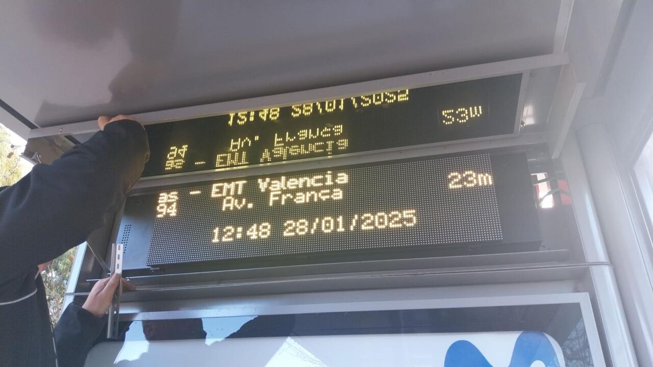 La Empresa Municipal de Transportes (EMT) de València ha iniciado este lunes trabajos para renovar los paneles informativos de sus paradas más utilizadas. Tal y como avanzamos aquí en Onda Cero el pasado mes de agosto, la inversión prevista es de 1,5 millones de euros a lo largo de los próximo cinco años, el 90% cofinanciado por los fondos Next Generation de la Unión Europea. La intención de la compañía es sustituir las pantallas informativas más antiguas por otras más modernas.