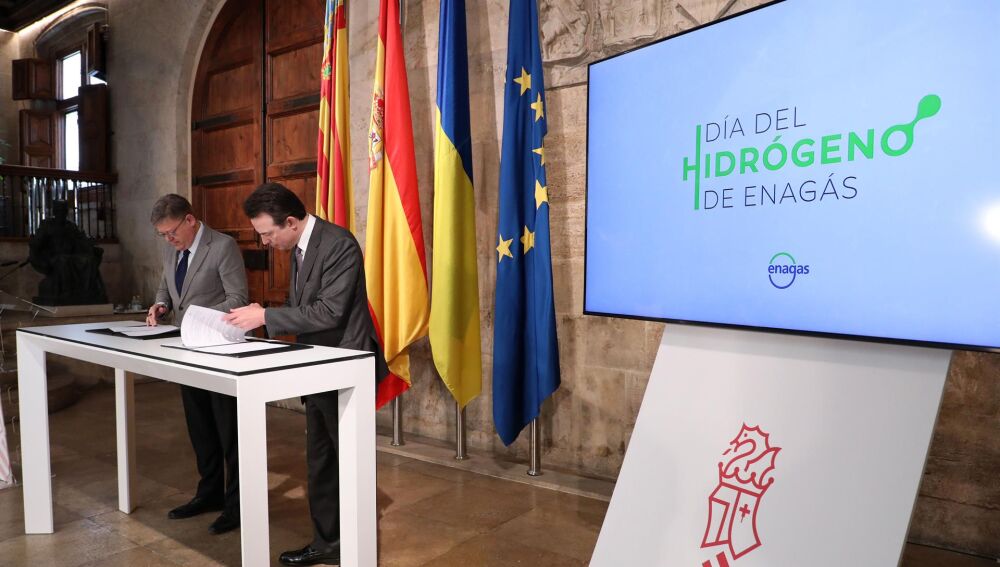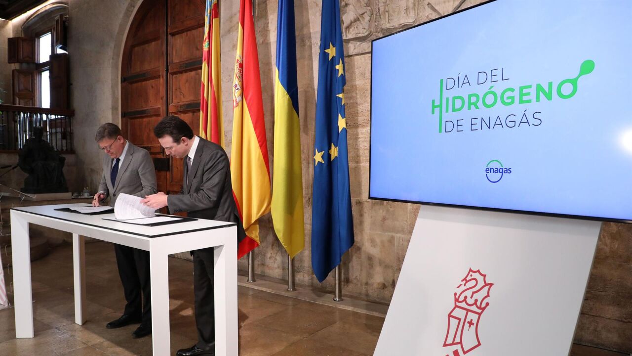 La Generalitat y Enagás han firmado este lunes un acuerdo de colaboración con el objetivo de que la Comunitat Valenciana tenga "protagonismo" en el eje mediterráneo del corredor europeo de hidrógeno verde H2Med y acoja 450 kilómetros de hidroductos en los que la compañía invertirá 575 millones de euros.