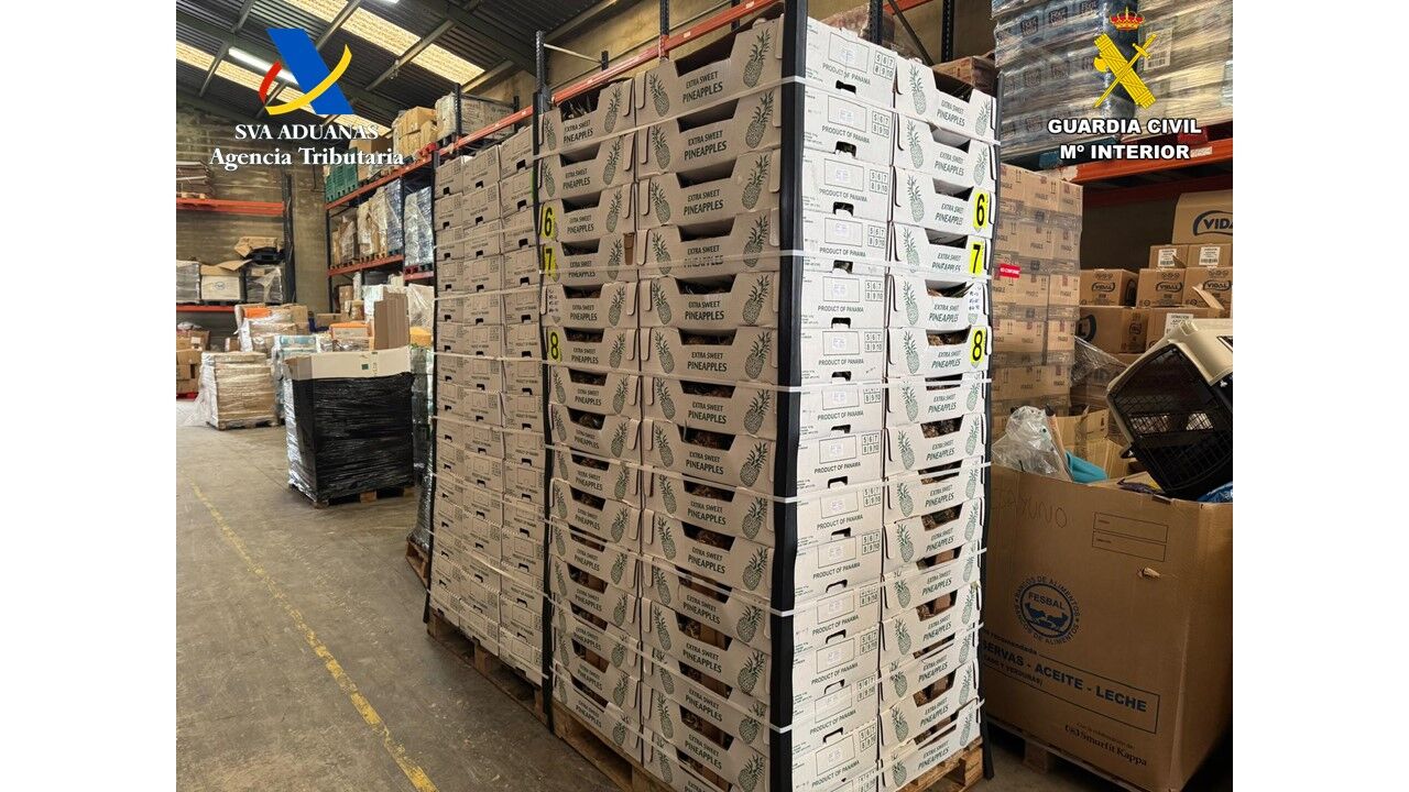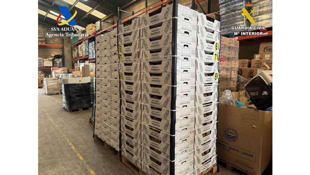 Una operación conjunta de la Guardia Civil y del Servicio de Vigilancia Aduanera de la Agencia Tributaria ha permitido la incautación de un alijo de más de 300 kilos de cocaína que entró en España por el puerto de València. La droga iba oculta en la estructura de un contenedor cargado de piñas que llegó a la ciudad del Turia el pasado 3 de enero procedente de Panamá. Los agentes de ambos cuerpos montaron un operativo de seguimiento y detuvieron a dos personas en el momento en que extraían la cocaína del contenedor en un polígono de la localidad barcelonesa de Els Mojons.