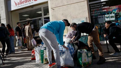 Numerosas personas se han acercado a dejar ropa, mantas y calzado para los vecinos afectados por el incendio de un edificio de Valencia. | EFE/Biel Aliño