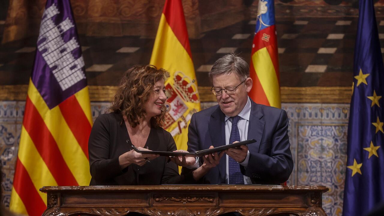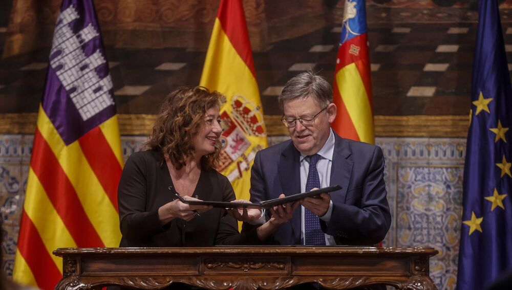 Entre las conclusiones de la segunda cumbre valenciano-balear, Puig y Armengol han reclamado de nuevo al Gobierno la reforma "inaplazable" de la financiación autonómica, así como avanzar en la "vía federal" de España, rebajar la crispación política, impulsar el un pacto de rentas y más participación de las comunidades en el control del precio de los alquileres y la gestión de los fondos europeos Next Generation EU.