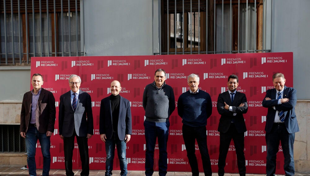 Sergio M. Vicente-Serrano (en el centro) junto al resto de los galardonados con los Premios Jaume I. | EFE/Manuel Bruque