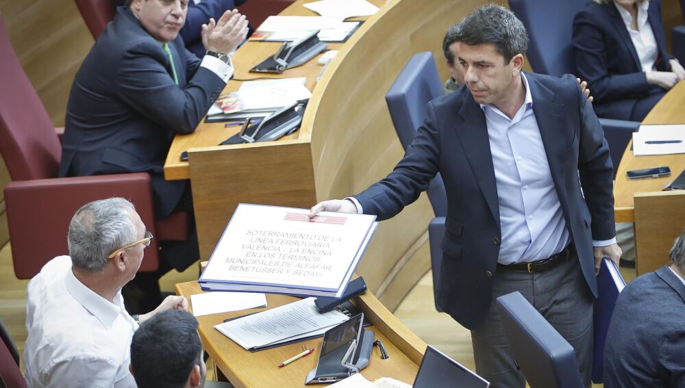 El 'president' de la Generalitat, Carlos Mazón, ha vuelto a ofrecer pactos a la oposición sobre el fondo de nivelación, las renovables, el agua o la cerámica. Además, les ha entregado el proyecto que ha elaborado la Conselleria de Infraestructuras para el soterramiento del paso a nivel de Alfafar y les ha pedido que insten al Gobierno central a que lo integre en los Presupuestos Generales del Estado.