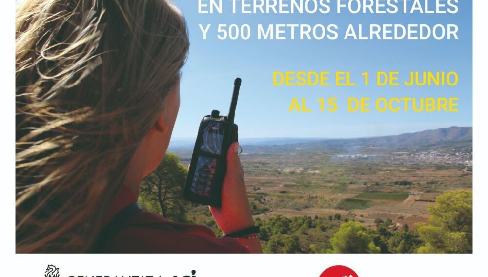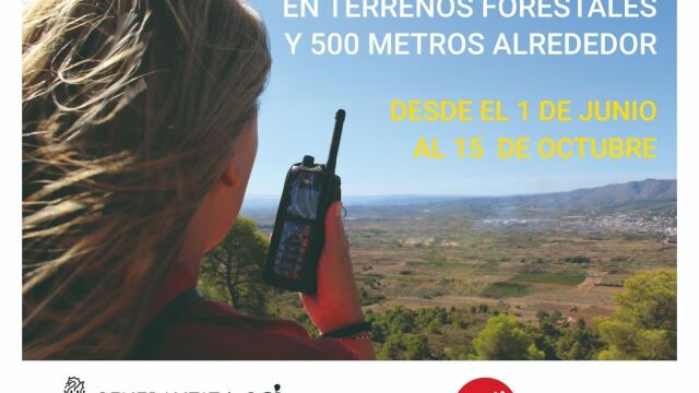 La Conselleria de Medio Ambiente, Infraestructuras y Territorio recuerda que durante el periodo estival entran en vigor las medidas establecidas para la prevención de incendios forestales, que prohíben el uso del fuego en los terrenos forestales o con una proximidad a estos menor a 500 metros.