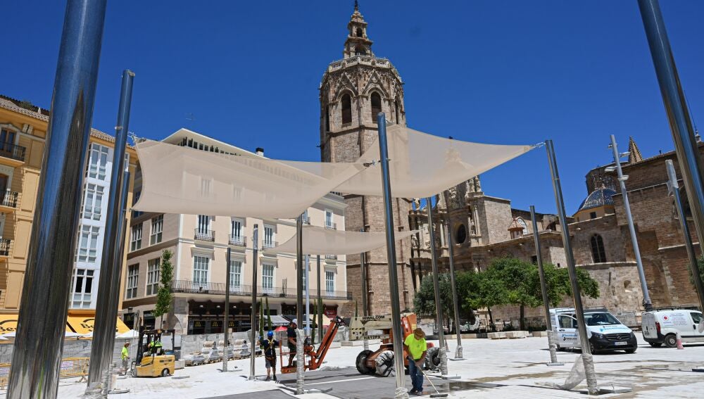 Montar y desmontar los toldos para crear zonas de sombra en la Plaza de la Reina de València costará alrededor de 100.000 euros durante los próximos cuatro años, según ha podido saber Onda Cero. Así figura en el pliego de condiciones del contrato que acaba de licitar la Empresa Municipal de Transportes (EMT) para adjudicar estos trabajos.