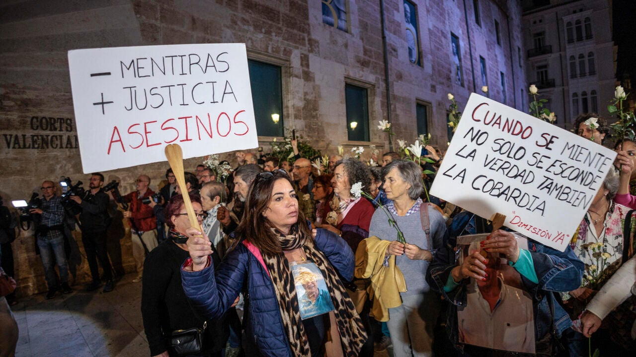 Rosa Álvarez, presidenta de la Asociación Víctimas Mortales Dana 29 de Octubre y Mariló Álvarez, presidenta de l’Associació Víctimes de la DANA 29 d’octubre de 2024, lamentan que el president de la Generalitat, Juanfran Pérez Llorca y el Partido Popular lo sigan protegiendo.