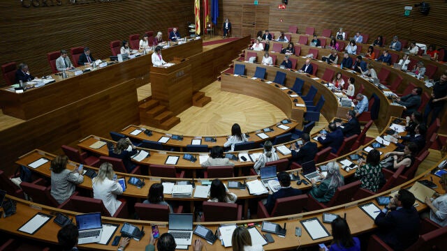 Satisfacción de PP y VOX que contrasta completamente con las críticas de la izquierda. PSPV-PSOE dice que son "los peores Presupuestos de la Generalitat de la historia" y Compromís, que ha desplegado la pancarta 'Mazón dimissió' en el interior del recinto del Parlamento valenciano, habla de "Presupuestos del odio".
