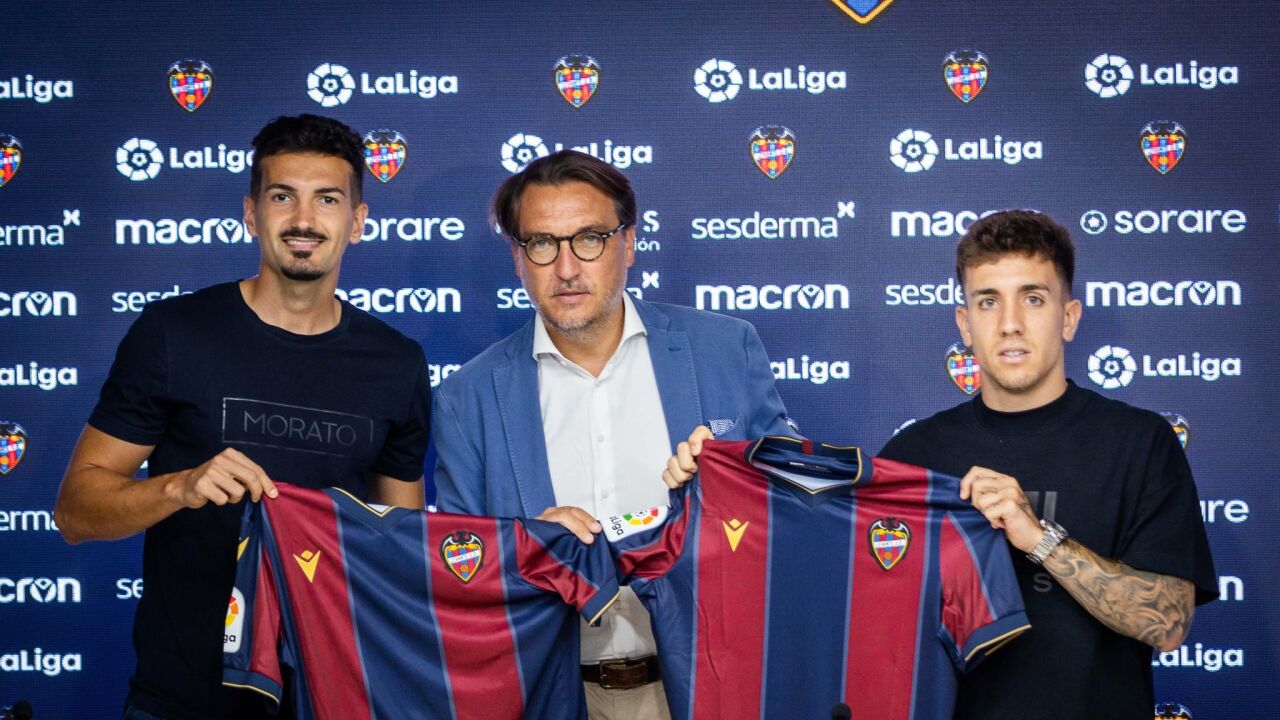 Al igual que hiciera en el día de ayer, el Levante ha presentado en la mañana de hoy a dos de sus nuevos futbolistas. Jon Montiel, centrocampista de 23 años que llega cedido del Rayo Vallecano y Álex Muñoz, lateral izquierdo que llega libre del CD Tenerife. Al igual que ayer ha estado presente el presidente del equipo levantinista Quico Catalán.