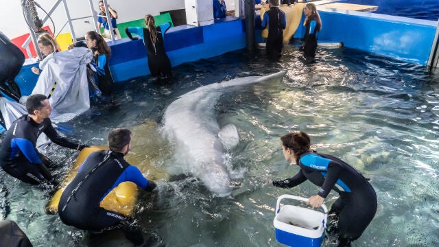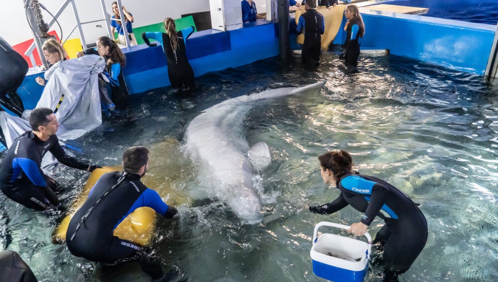 Las belugas permanecerán inicialmente en áreas que no son accesibles ni visibles al público y cuando estén totalmente recuperadas y adaptadas se unirán a Kylu y Yulka, las belugas residente del Oceanogràfic de Valencia.
