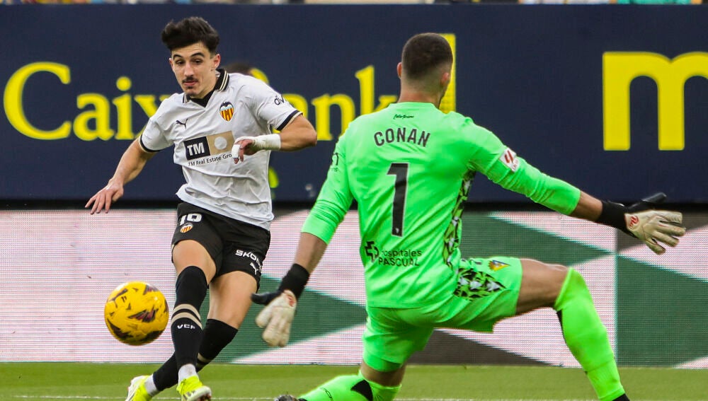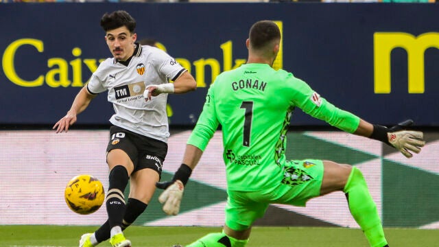 Fue Hugo Duro quien abría el marcador para el Valencia tras aprovechar una gran jugada de Diego López. El extremo superaba en velocidad a Fali y su centro hacia atrás era rematado por el delantero valncianista.