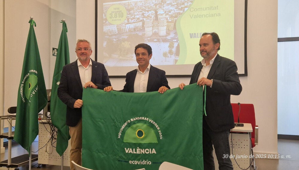 El concejal de Mejora Climática y Gestión del Agua, Carlos Mundina, ha recogido este lunes la Bandera Verde de la Sostenibilidad 2024, que el Ayuntamiento de València obtuvo en la V campaña del #MovimientoBanderasVerdes que impulsa la entidad Ecovidrio por la sostenibilidad de la hostelería. Tal como ha subrayado Mundina, “estas iniciativas reconocen el esfuerzo y compromiso con la sostenibilidad, tanto de la hostelería local como de los diferentes ayuntamientos participantes en un momento clave como es el verano”. “En nuestro caso –ha subrayado el concejal- este premio es el reflejo del trabajo de mucha gente: de los servicios municipales, del sector hostelero, de los ciudadanos y ciudadanas, y de quienes, día a día, hacen posible que el reciclaje de envases de vidrio sea una realidad eficiente y responsable”.
