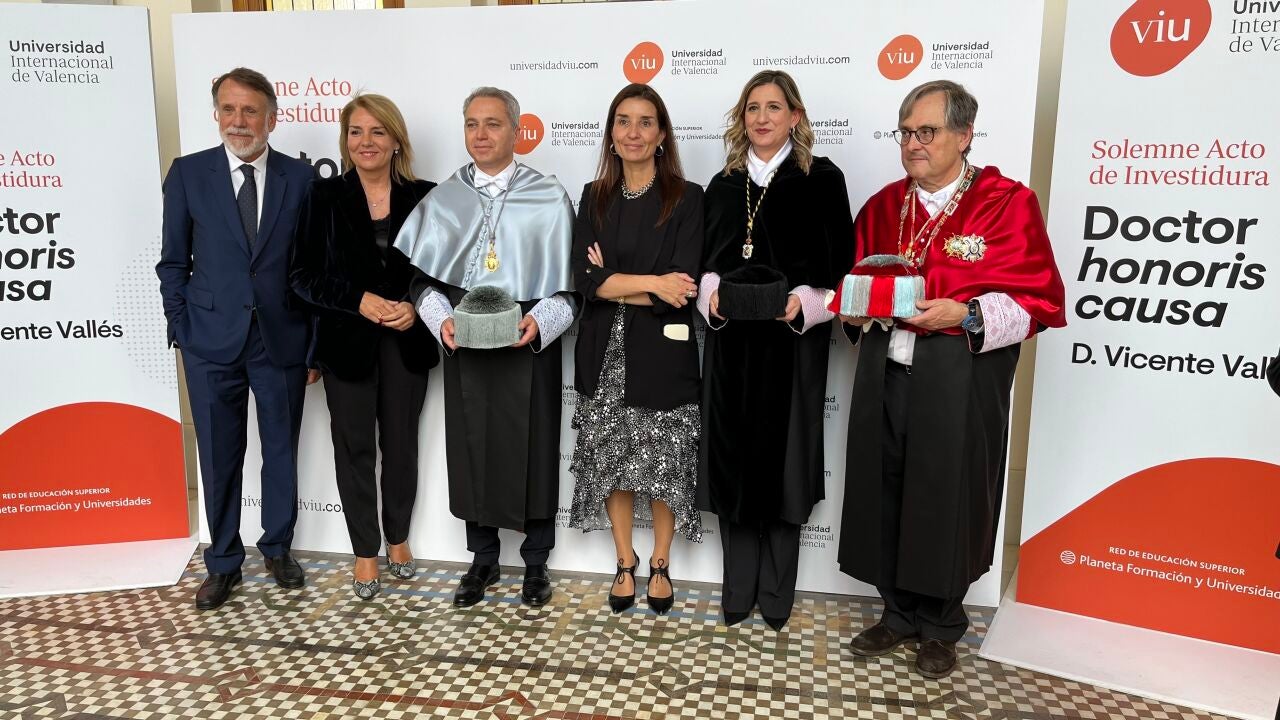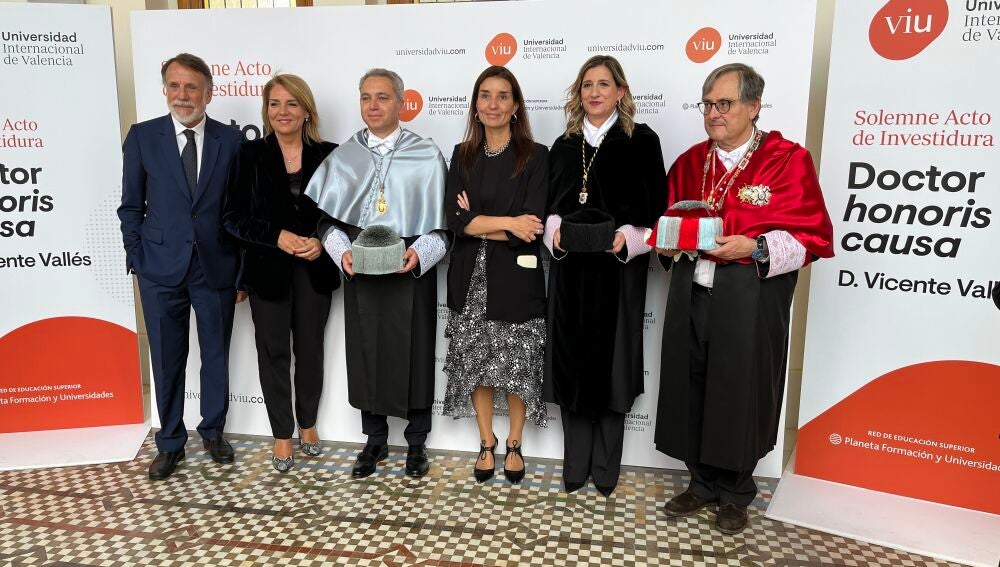 La sesión de investidura de Vallés como doctor 'honoris causa' de la Universidad Internacional de Valencia ha contado con la asistencia y presencia del presidente de Atresmedia y del Grupo Planeta, José Crehueras. El acto ha sido apadrinado, además, por el director de La Razón, Francisco Marhuenda, quien ha subrayado los valores profesionales y personales de Vicente Vallés.