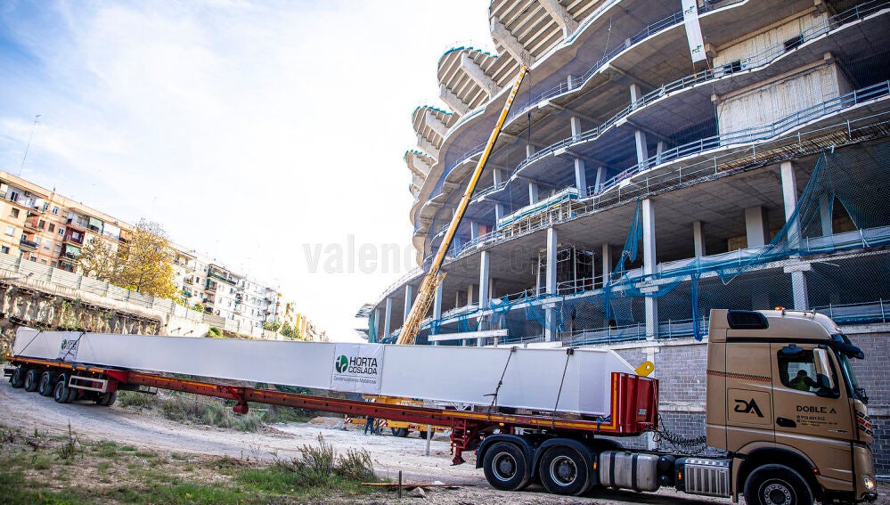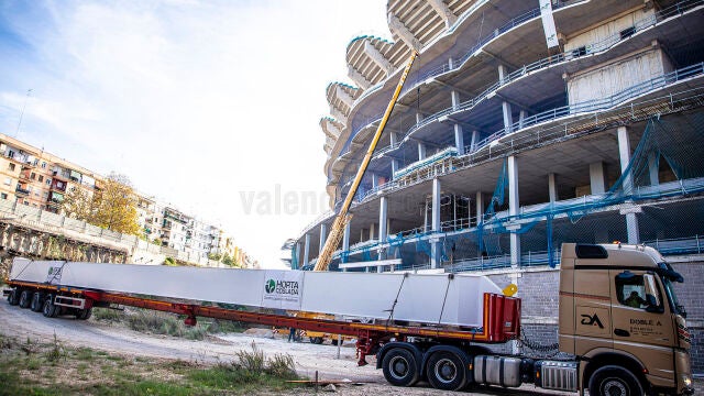 Los pilares para asentar la cubierta del Nou Mestalla, empiezan a llegar al nuevo estadio