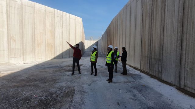 La Presidenta del Consorcio Vega Baja Sostenible, Teresa María Belmonte Sánchez, el Diputado Medio Ambiente, Energía y Residuos Sólidos de la Diputación de Alicante, Miguel Ángel Sánchez Navarro y el Director General de Vaersa, Benjamín Maceda López, ente instrumental del consorcio encargado de la ejecución de las obras, han visitado esta mañana las obras de construcción de la planta de transferencia de residuos urbanos en el municipio de Dolores.