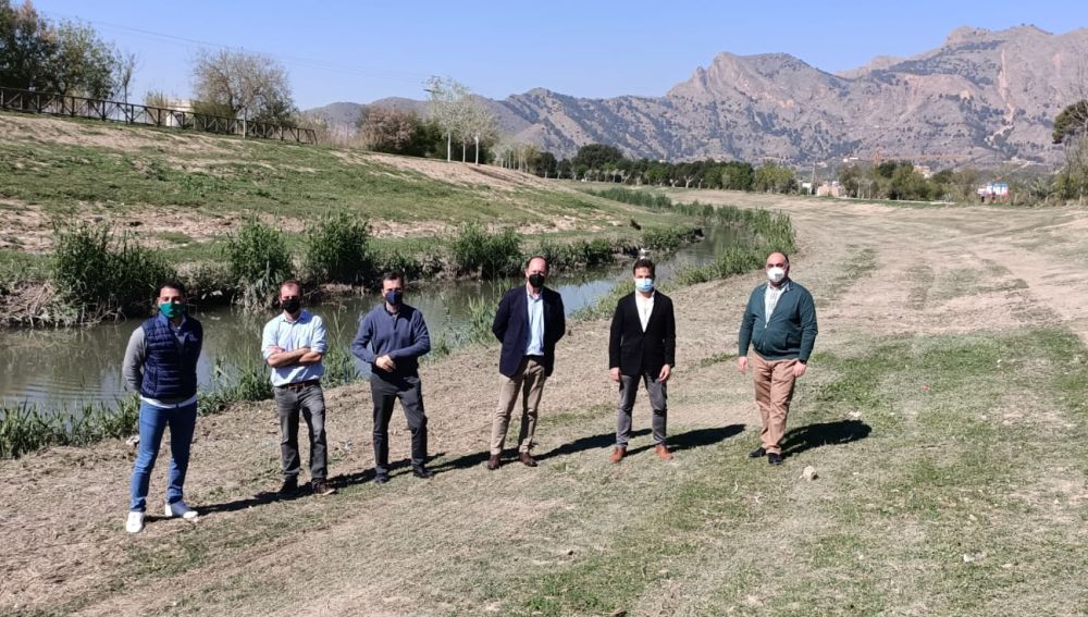 El alcalde de Orihuela, Emilio Bascuñana, acompañado de Dámaso Aparico y Víctor Valverde, concejales de Medio Ambiente y Desarrollo Rural respectivamente, junto a Adolfo Mérida, comisario adjunto de la Confederación Hidrógrafica del Segura; Juan José Alonso, gerente de Hidraqua y Eduardo Lafuente, jefe de servicio de Estudio Medioambientales de la CHS han presentado el proyecto de restauración de ‘Bosque de Ribera del Río en Orihuela’.