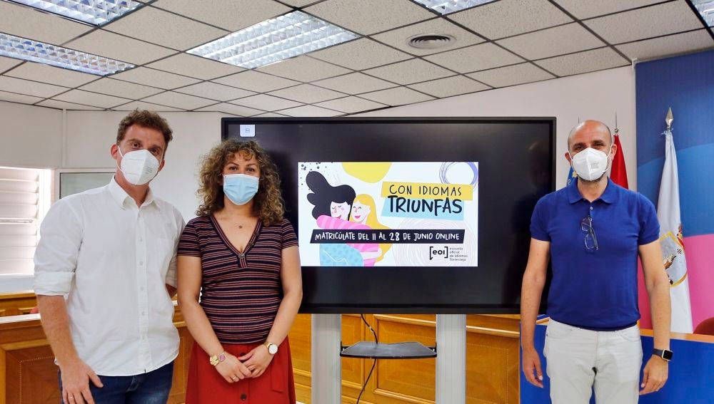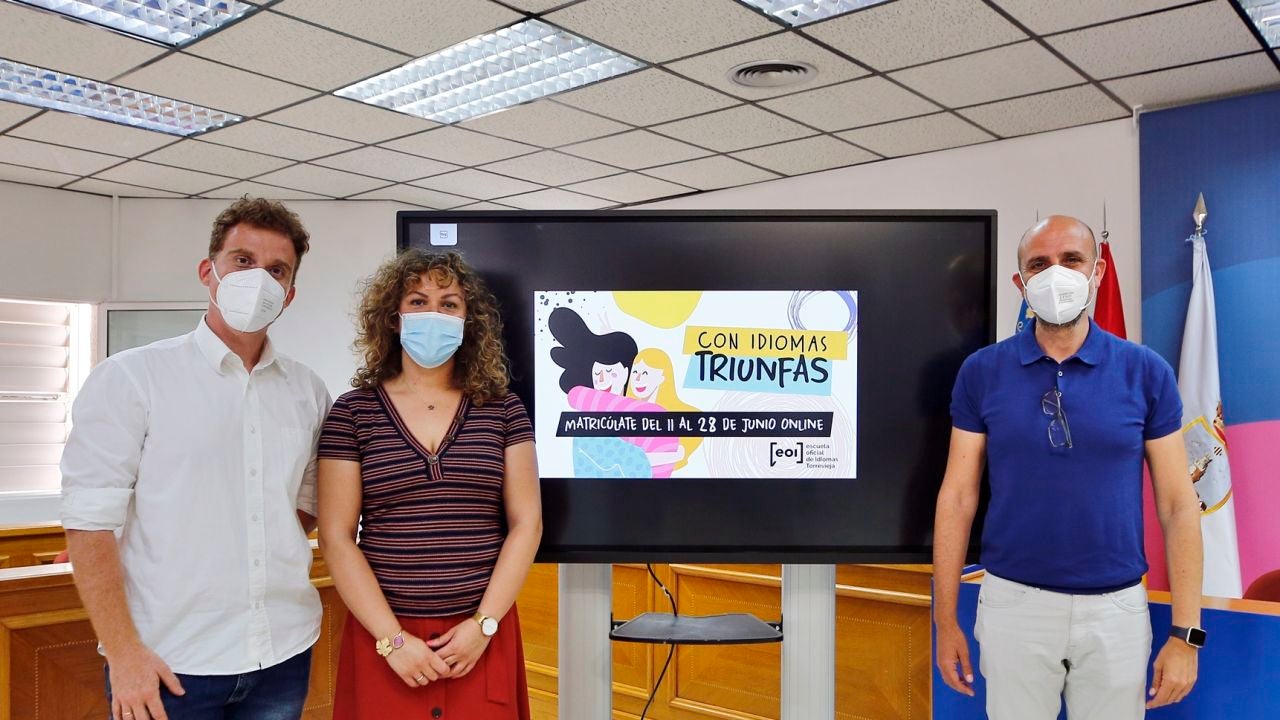 El concejal de Educación del Ayuntamiento de Torrevieja, Ricardo Recuero, acompañado del director de la Escuela Oficial de Idiomas de Torrevieja, Juan Manuel Margalef, y la jefa de estudios del centro, Adriana Valero, han informado del plazo de matriculación para el curso lectivo 2021/2022, que volverá a ser de forma presencial, del 11 de junio al 28 de junio. Los niveles de los 6 idiomas que oferta la EOI parten desde el nivel más básico (A2), hasta el nivel experto o nativo (C2).