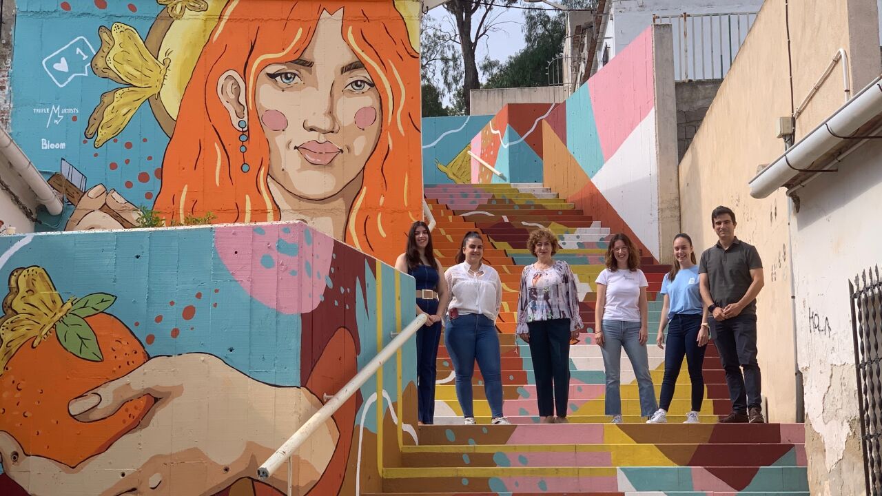 Como explica María Escarbajal, del grupo 'Triple M', compuesto por las tres artistas que han llenado de color este barrio a través de estos murales, “hemos pintado dos murales, que son una especie de trampantojo con escalera, una pintura vertical, dos piezas urbanas con magia, donde se ha representado una escenificación de la Venus de Rossetti, como diosa del amor, en este caso de la Vega Baja representando por su fruto, la naranja y el limón”.