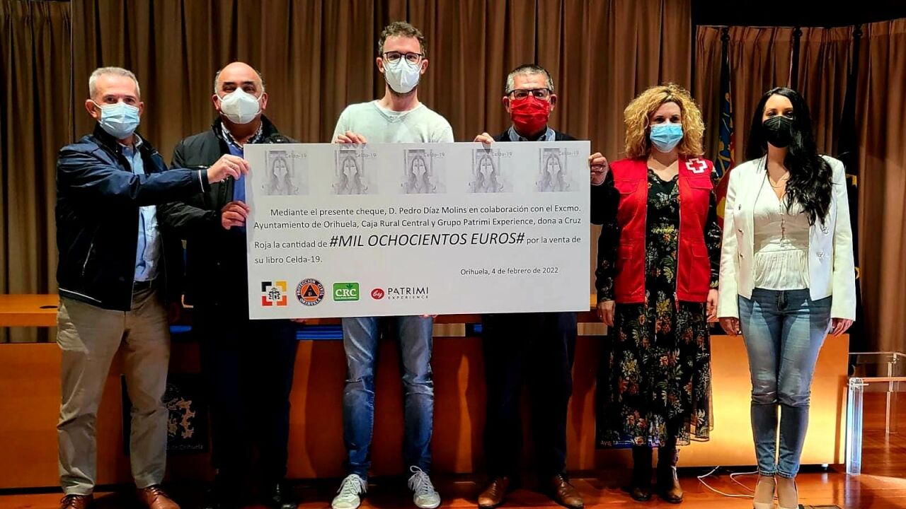 El Ayuntamiento de Orihuela asiste a la entrega del cheque a Cruz Roja con los beneficios de la venta del libro ‘Celda-19’ | onda cero vega baja