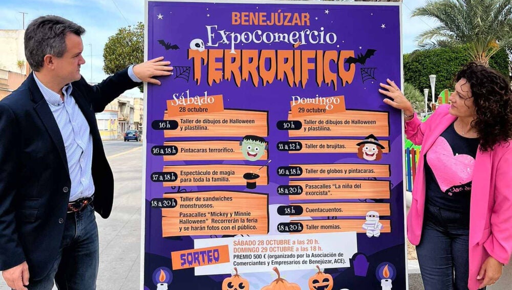 Asimismo, el sábado 28 y el domingo 29, la Plaza de España de Benejúzar será el lugar donde se desarrolle el Expocomercio Terrorífico. Un evento que “pretende mostrar a quienes se acerquen este fin de semana al municipio la calidad y variedad de nuestro comercio local, todo ello acompañado de animación y actividades ambientadas en la festividad de Halloween”, ha manifestado la concejala de Comercio y Promoción Económica, Patricia Rodes.