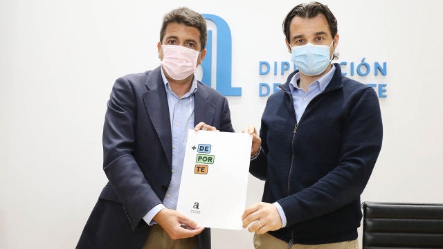 Acompañado por el diputado de Presidencia y Deportes, Eduardo Dolón, Mazón ha desglosado ante los medios de comunicación este paquete de ayudas que contempla dos líneas, una presupuestada con 7 millones de euros para subvencionar a todas las poblaciones en obras ejecutadas en infraestructuras deportivas de titularidad municipal, y otra con 3 millones de euros para la renovación del césped artificial de los campos de fútbol locales, una vez superada una antigüedad de entre ocho a diez años.