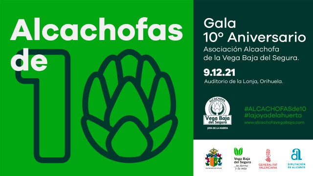 ANIVERSARIO ALCACHOFACelebración de la Gala del décimo aniversario de la Alcachofa de la Vega Baja del Segura ·Día:jueves, 9 de diciembre.·Hora:19:30 horas.·Lugar:Lonja de Orihuela Onda Cero Vega Baja Vega Baja | 09.12.2021 09:09 Celebración de la Gala del décimo aniversario de la Alcachofa de la Vega Baja del Segura | onda cero vega baja