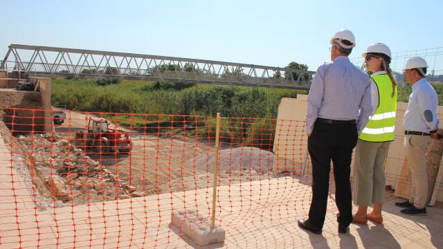 El presidente de la CHS, Mario Urrea, acompañado por el Comisario Adjunto, Adolfo Mérida, junto con el alcalde de Formentera, Francisco Cano, ha visitado las obras de emergencia de reposición de dos módulos del muro de encauzamiento del cauce del río Segura a su por el término municipal de Formentera del Segura (Alicante).