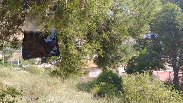Las trampas se han colocado en zonas estratégicas donde ha sido detectado un mayor número de incidencias de orugas entre los meses de enero-febrero. Capturando a los machos se consigue que la probabilidad de encuentros con las hembras se reduzca y por tanto haya menos puestas y por tanto menos bolsones en el futuro. Este método de control biológico no utiliza productos químicos nocivos y estará operativo entre junio y septiembre. De manera periódica se irán revisando las trampas para el conteo de las capturas realizadas por cada una de ellas. De los resultados obtenidos se puede obtener un gráfico con la curva de vuelo de la especie que puede indicarnos el momento más adecuado para iniciar los tratamientos fitosanitarios en otoño. El pasado mes de diciembre se realizó el tratamiento contra la oruga procesionaria del pino en todo el término municipal mediante pulverización de producto biológico.